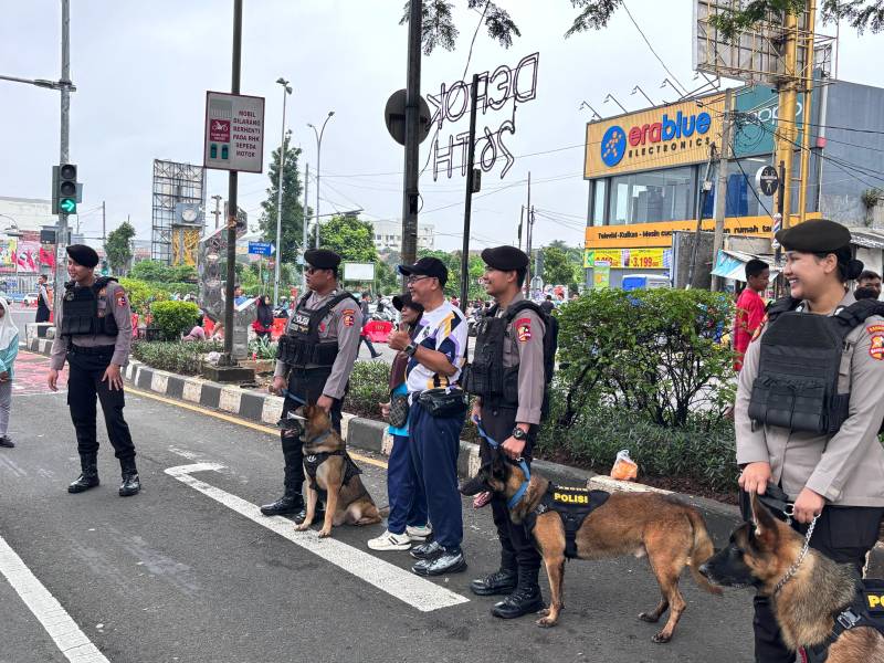Depok, Ekoin.co – Korps Sabhara Baharkam Polri melalui Korsabhara mengerahkan Detasemen K-9 Direktorat Polisi Satwa untuk mengamankan kegiatan Car Free Day (CFD) di kawasan Tugu Lingkar (TL) Margonda, Kota Depok, Minggu (1/2/2026). Langkah ini dilakukan sebagai bagian dari upaya preventif Polri dalam menjaga keamanan dan kenyamanan masyarakat di ruang publik.