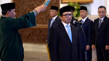 Presiden Prabowo memimpin langsung prosesi pengambilan sumpah yang dilakukan oleh Juda Agung saat upacara pelantikan.