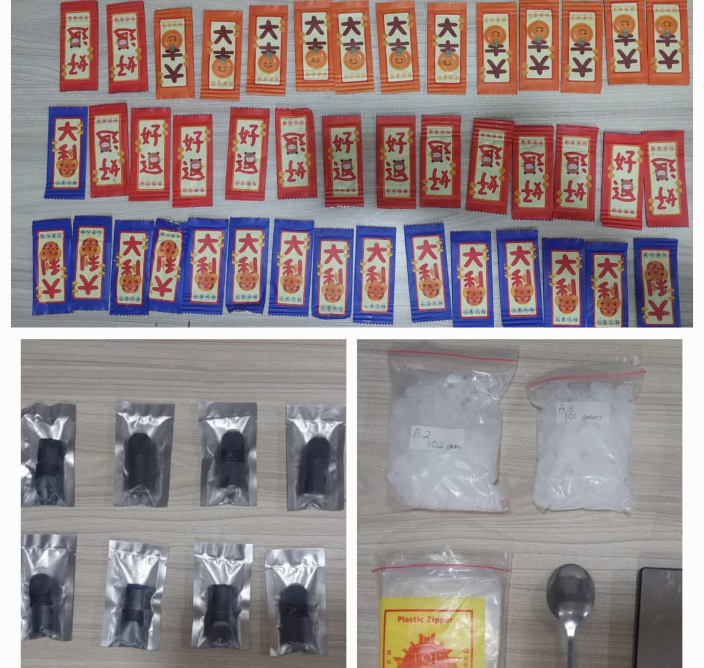 - Happy Water Bubuk: 62 Pcs (Narkotika bubuk yang biasanya dicampur ke dalam minuman).