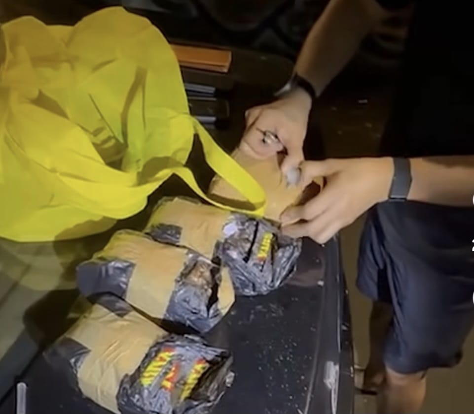 Sekitar pukul 00:13 WIB tim Subdirektorat IV Direktorat Tindak Pidana Narkoba Bareskrim Polri memberhentikan mobil tersebut dan melakukan penggeledahan. Hasilnya ditemukan kantong belanja berlogo salah satu merek minimarket berwarna kuning, yang berisi satu bungkus plastik warna coklat dan tiga bungkus plastik warna hitam.