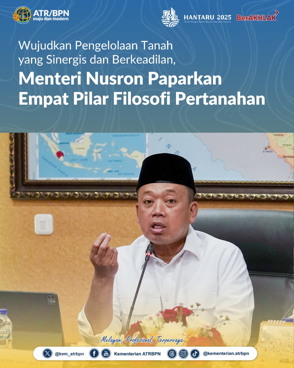 Wujudkan Pengelolaan Tanah yang Sinergis dan Berkeadilan, Menteri Nusron Paparkan Empat Pilar Filosofi Pertanahan*