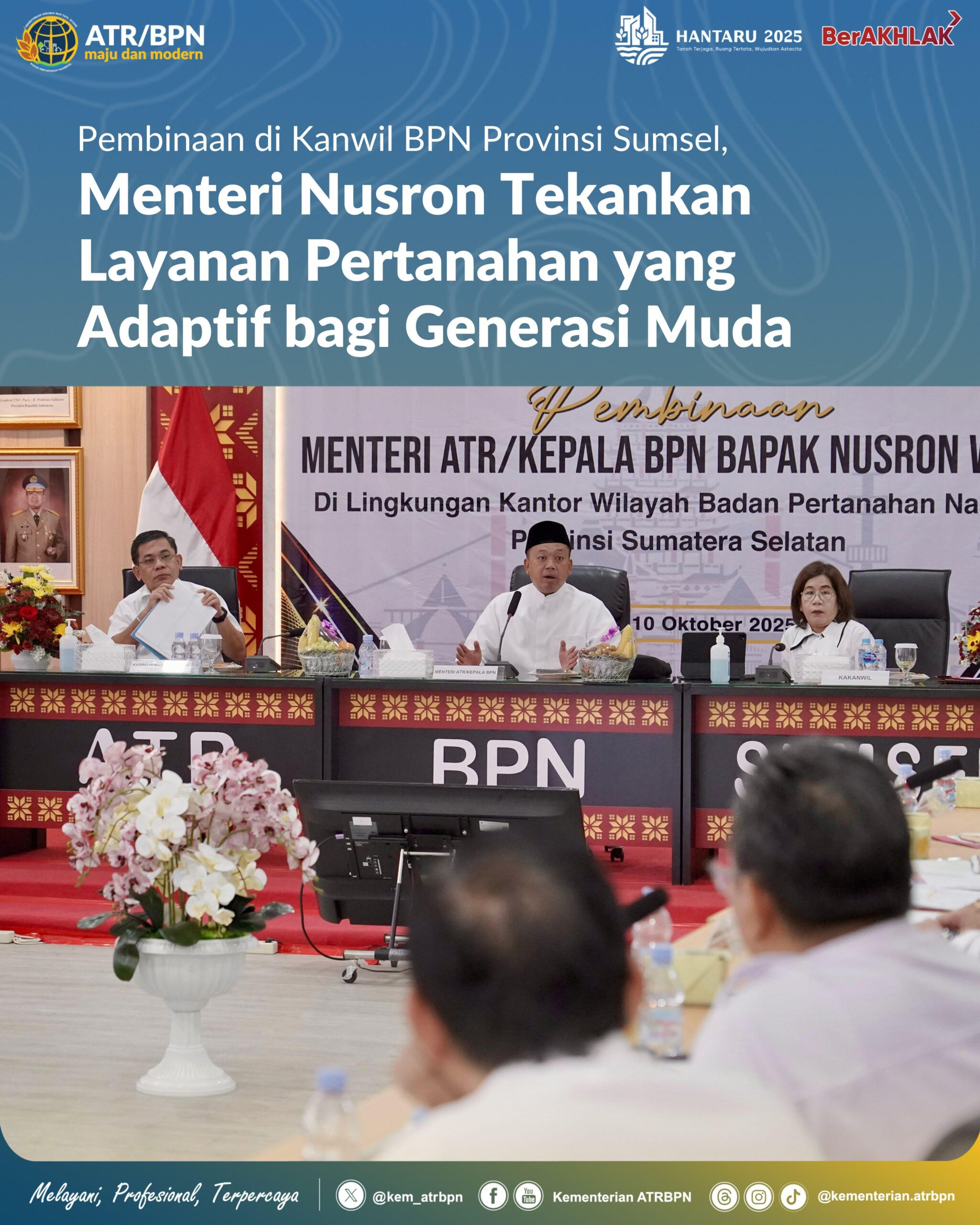 Pembinaan di Kanwil BPN Provinsi Sumsel, Menteri Nusron Tekankan Layanan Pertanahan yang Adaptif bagi Generasi Muda*