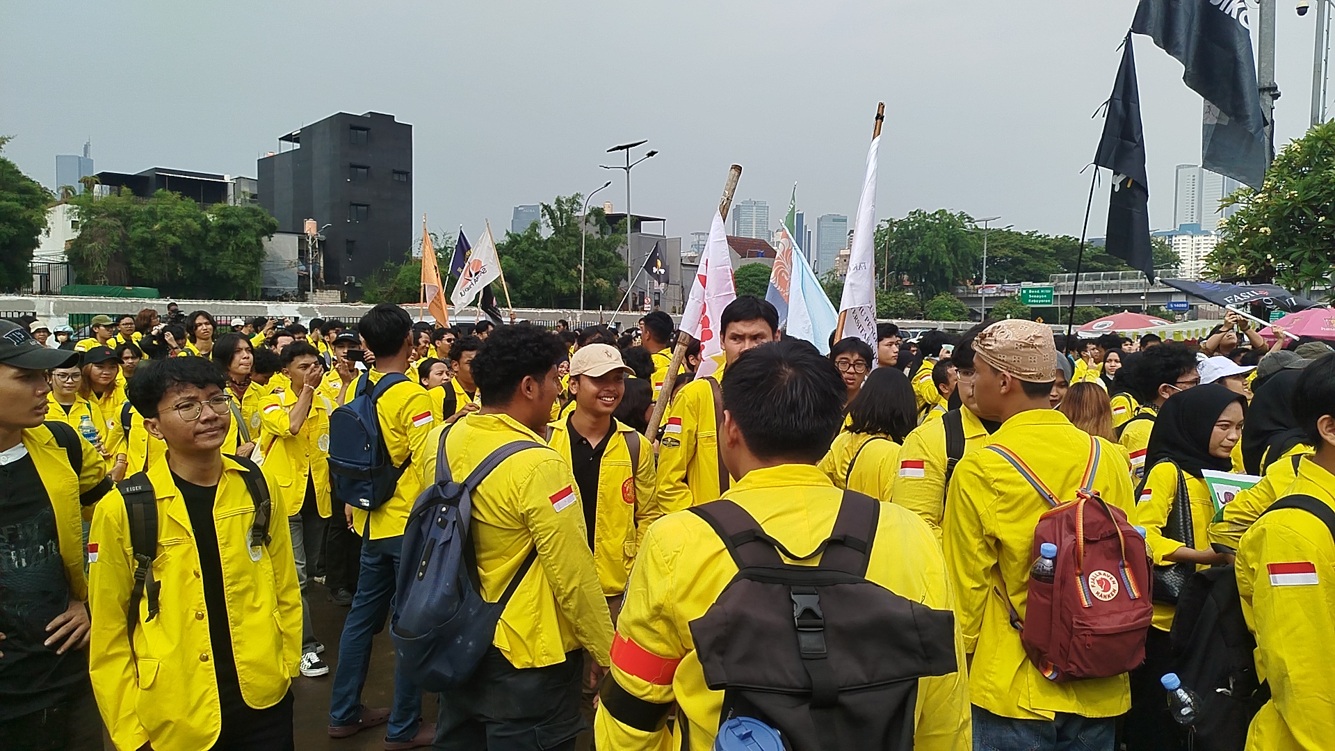 Aksi BEM UI #RakyatTagihJanji Padati Gedung DPR